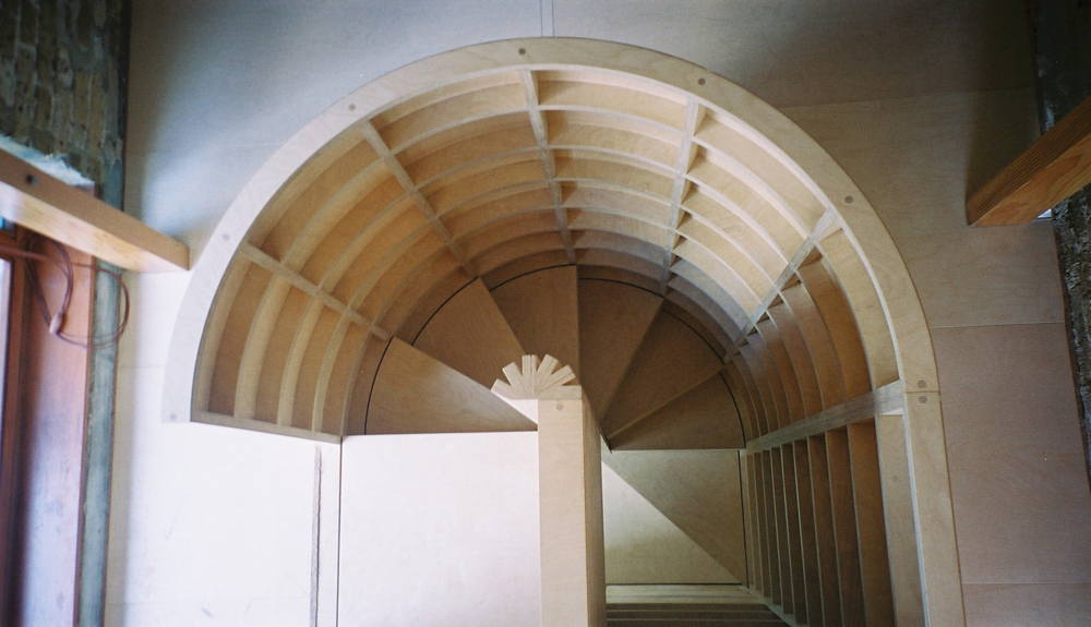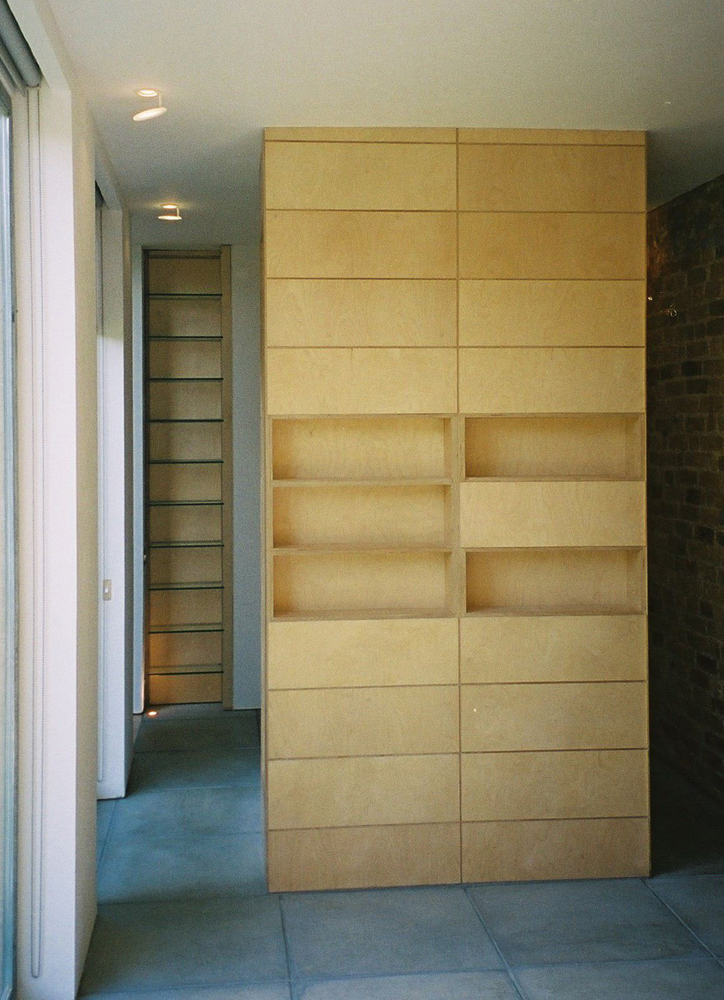 specially shaped cupboards, an unusual cellar and the opening up the ground floor to the garden and to the light.